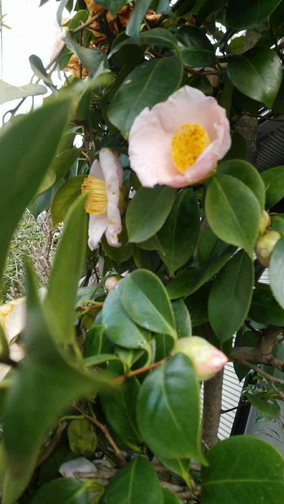 帰路に淡いピンクのサザンカを見つけました。優しい彩りですね😍😉