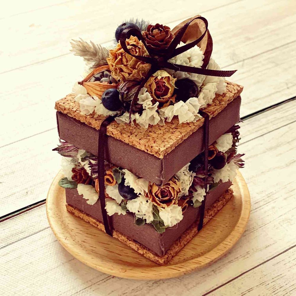 説明動画を見て作るのですが「間にドライフラワーをつめていく」だけの説明なので、どの花材からつめてくのがバランスがいいのかコツが掴めず、変な仕上がりになってしまいました💦