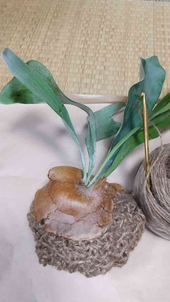 麻ヒモで、ビカクシダの