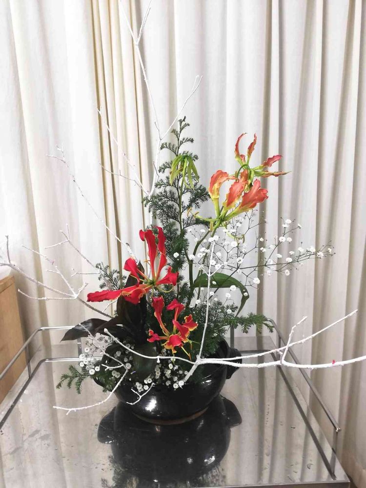グロリオサ❤️は個性的で華やかな花ですのでそれを生かしてあげたいですがそれほど腕前が…😅