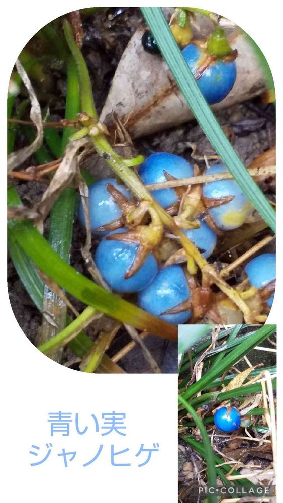 ジャノヒゲの葉は年中常緑で、実は鳥さんが見つけない限り5月ぐらいまで青いままです💙