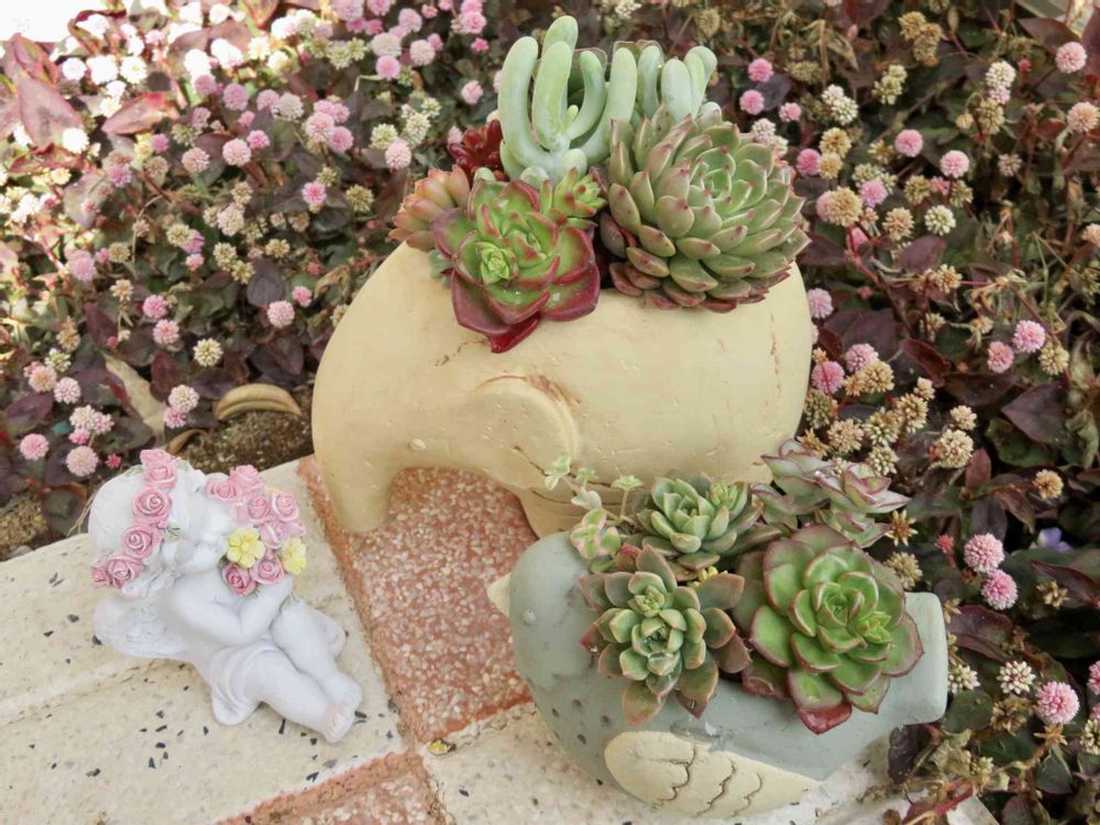 ふっくらアニマルプランターかわいいですね〜寄せ植えも素敵っ"(⌯︎¤̴̶̷̀ω¤̴̶̷́)✧︎