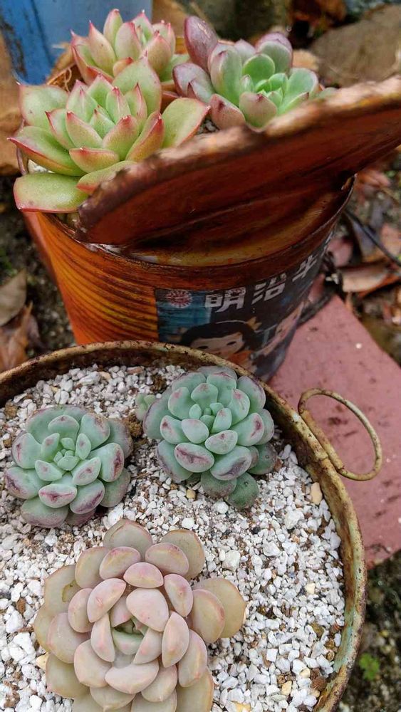 ぱんちゃん作リメ缶に先日狩った100均多肉を植えました✨