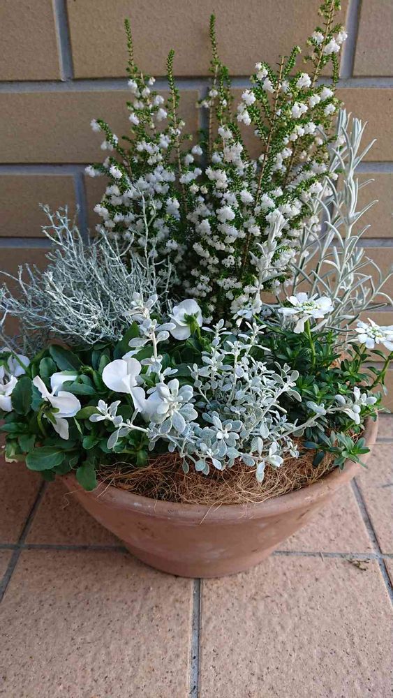 雪を思わせるステキな寄せ植えですね❄️❄️