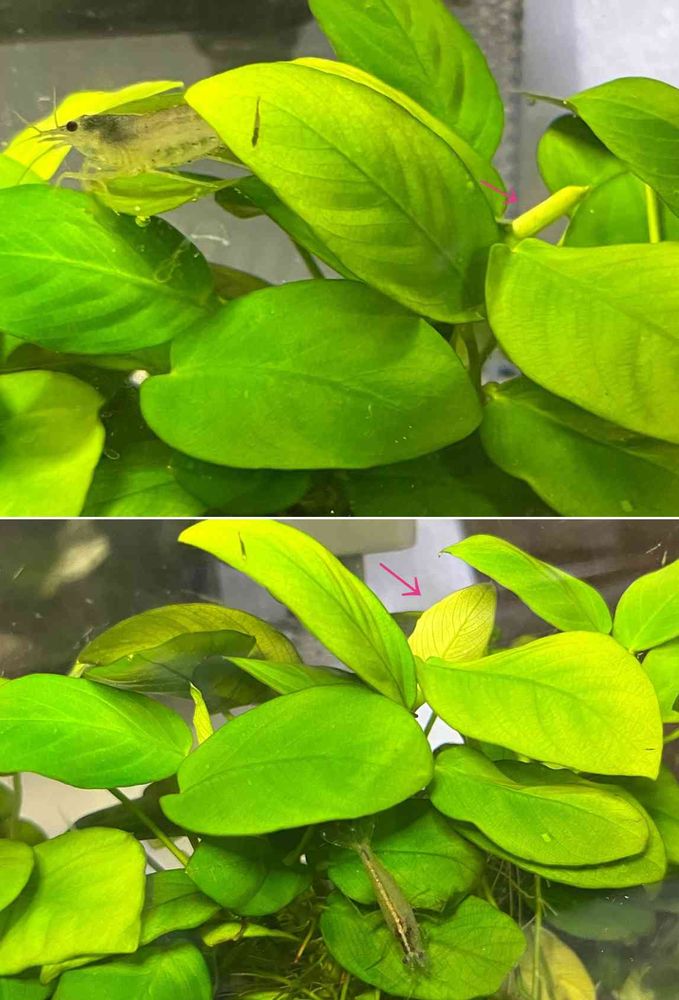 アヌビアスにはやっぱりエビちゃんと小魚と貝だよね〜😚