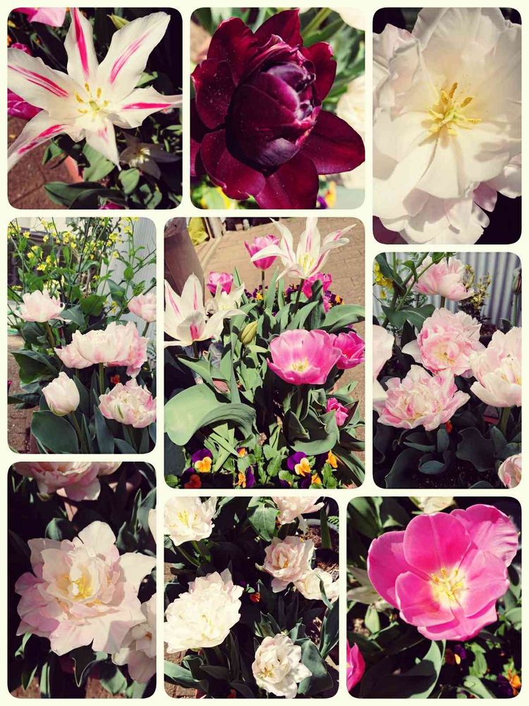 いろのあるわね🎵5年前に黄色の背の低い小さな種類買ってきたのよ🎵富山のチューリップ🌷祭でかったの❤️でも小さくて日陰になって可愛いそうなの😅やはり赤白黄色よ❤️✌✌✌
