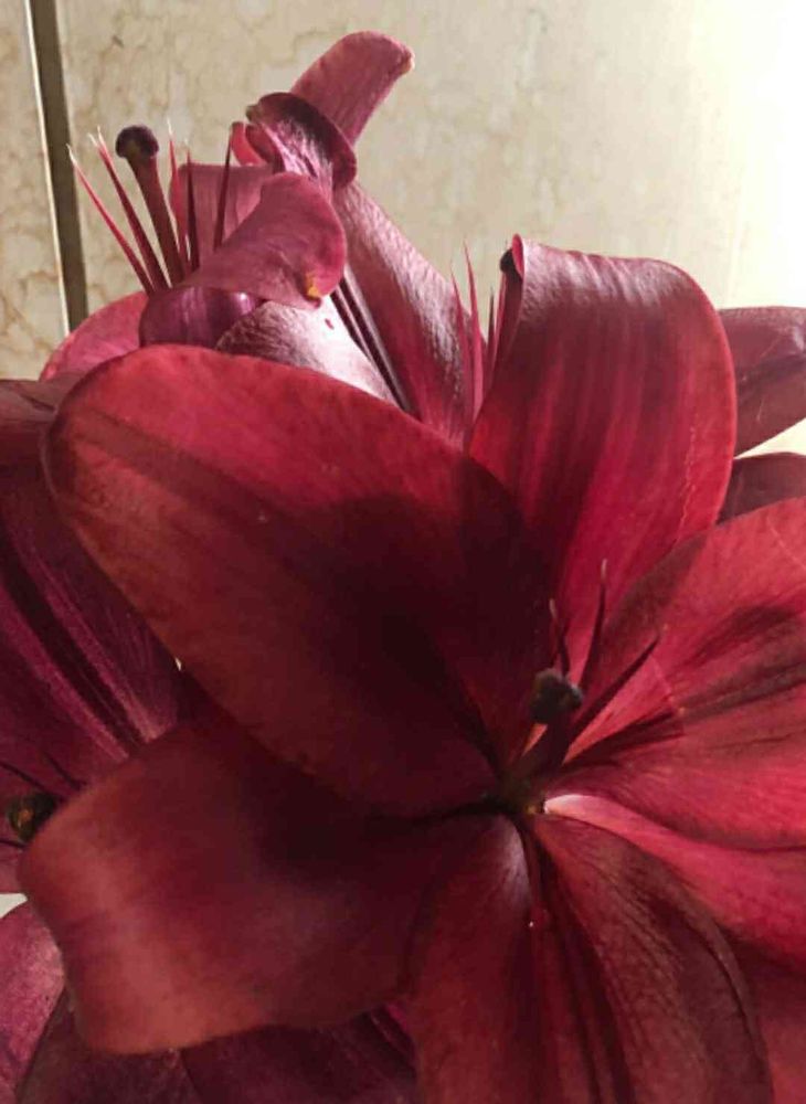 美容室に飾ってあった、真っ赤なユリの花です♥️♥️♥️。