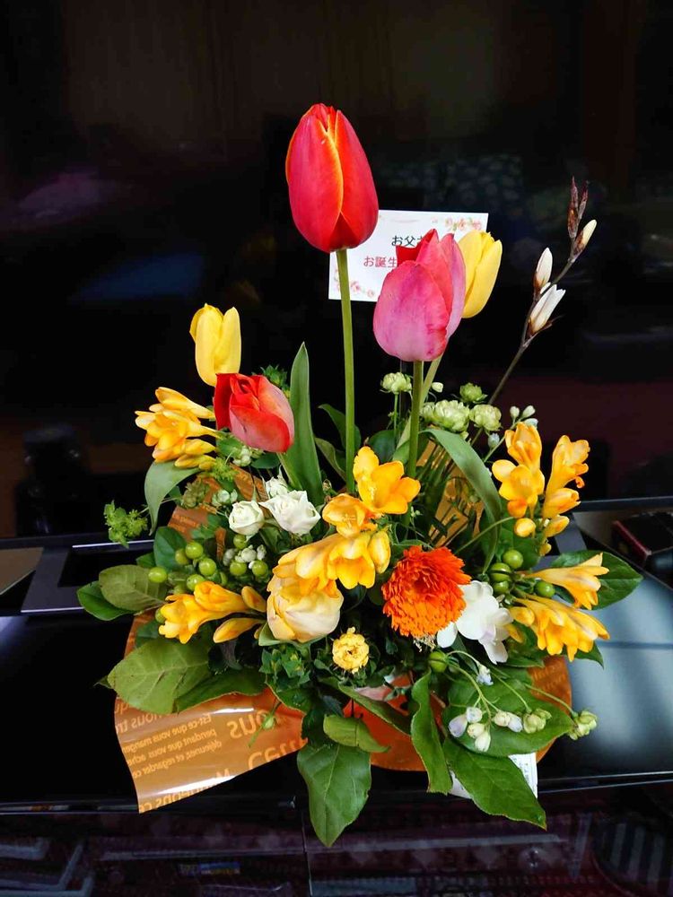 主人の誕生日に花籠でプレゼントして✨✨✨
