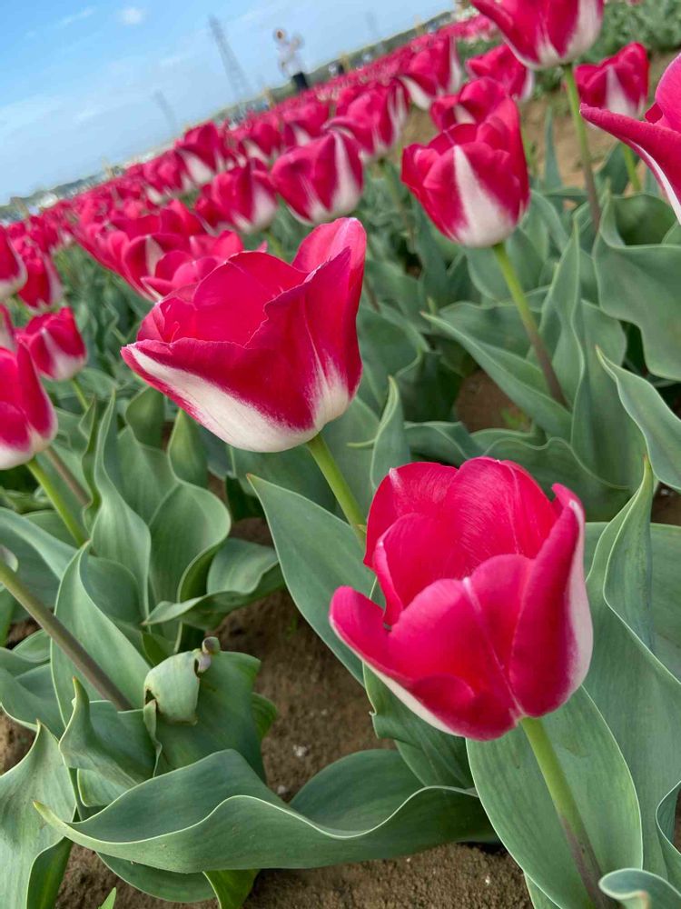 わぁ〜、どこまでも続くチューリップ🌷