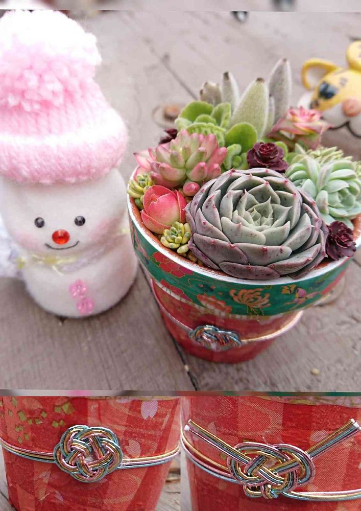 素敵な寄せ植えと水引を結んだ和のデコ鉢のお隣に♥