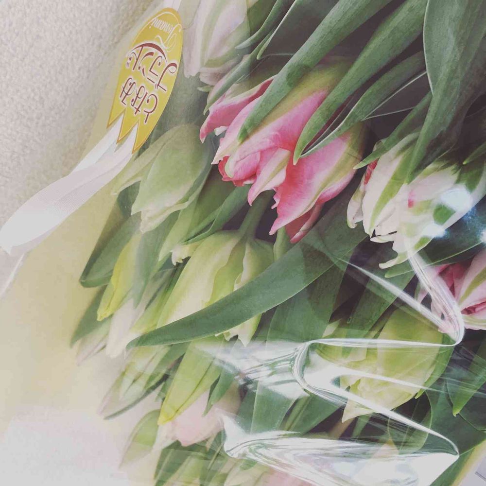 富山県砺波市の知人から供花として送られてきたチューリップの花束。思い出の一枚。