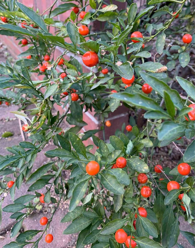 7月からずっと赤い実をつけ続けていましたが、だいぶシワシワしてきて落ちているものも。