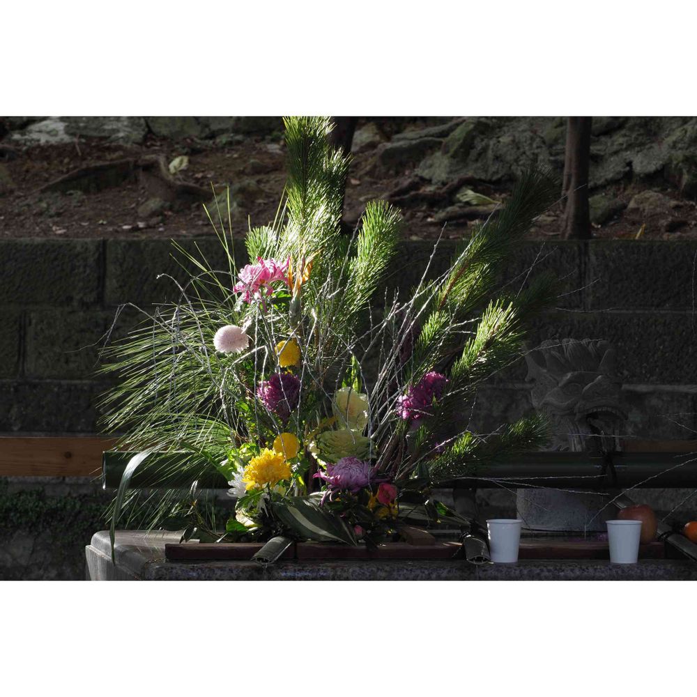 江島神社の階段の途中の手水舎に飾ってあった生け花...