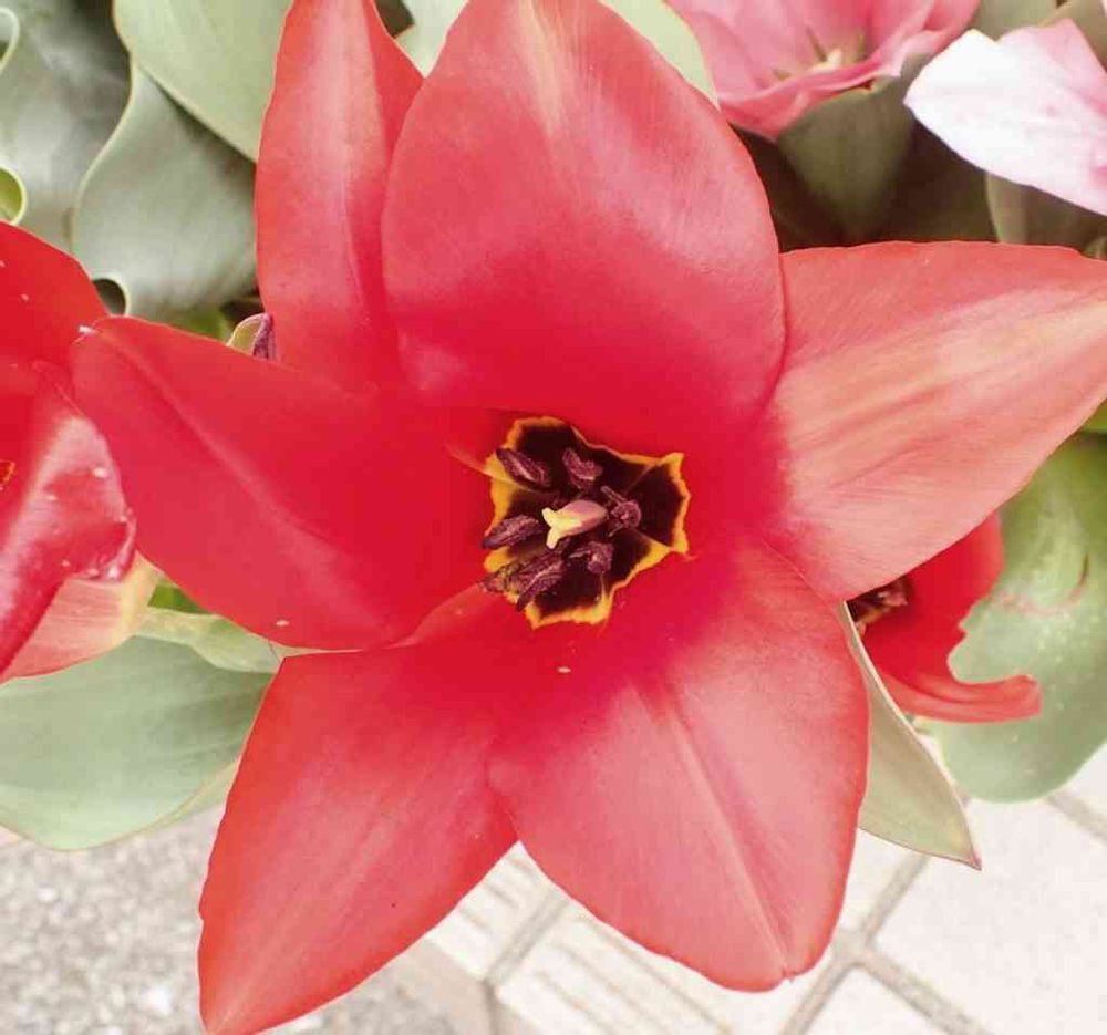 真っ赤な火曜日~💖😍今日のお花、チューリップです🌷これはレッドエンペラー、鮮やかな朱赤がまぶしい、早咲きでやや背の低いフォステリアナ系の、古くからある品種です😊