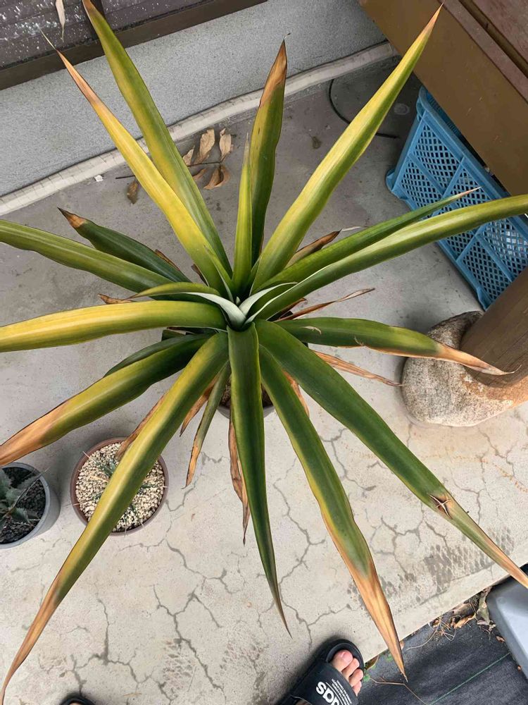 寒さで葉先が痛んできてる😓一年目は家に入れれたけど、もう1メートル超えてきたから...寒冷紗買ってあげようと、あと少し頑張って🍍😋