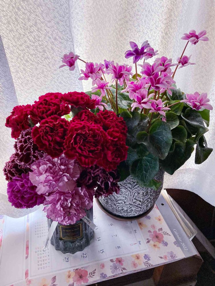窓辺,カーネーション,八重咲きシクラメン・フェアリーピコの投稿画像