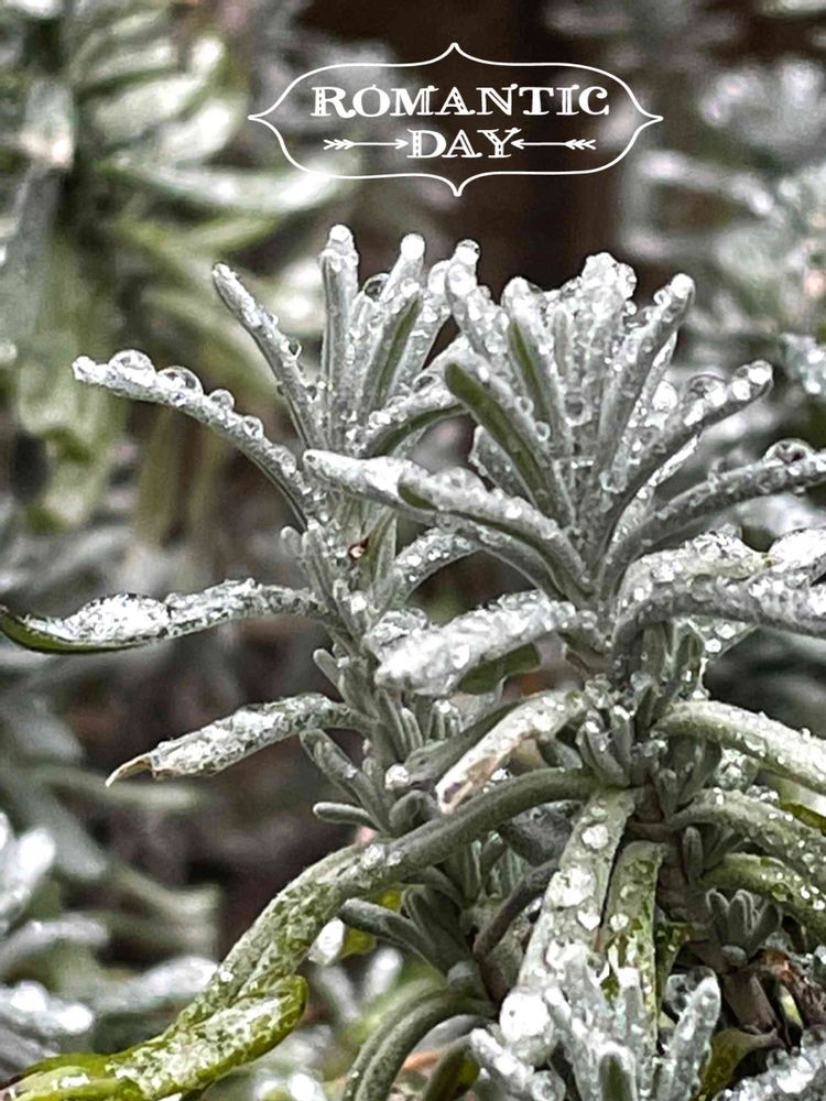 昨夜の雨でラベンダーのシルバーリーフが