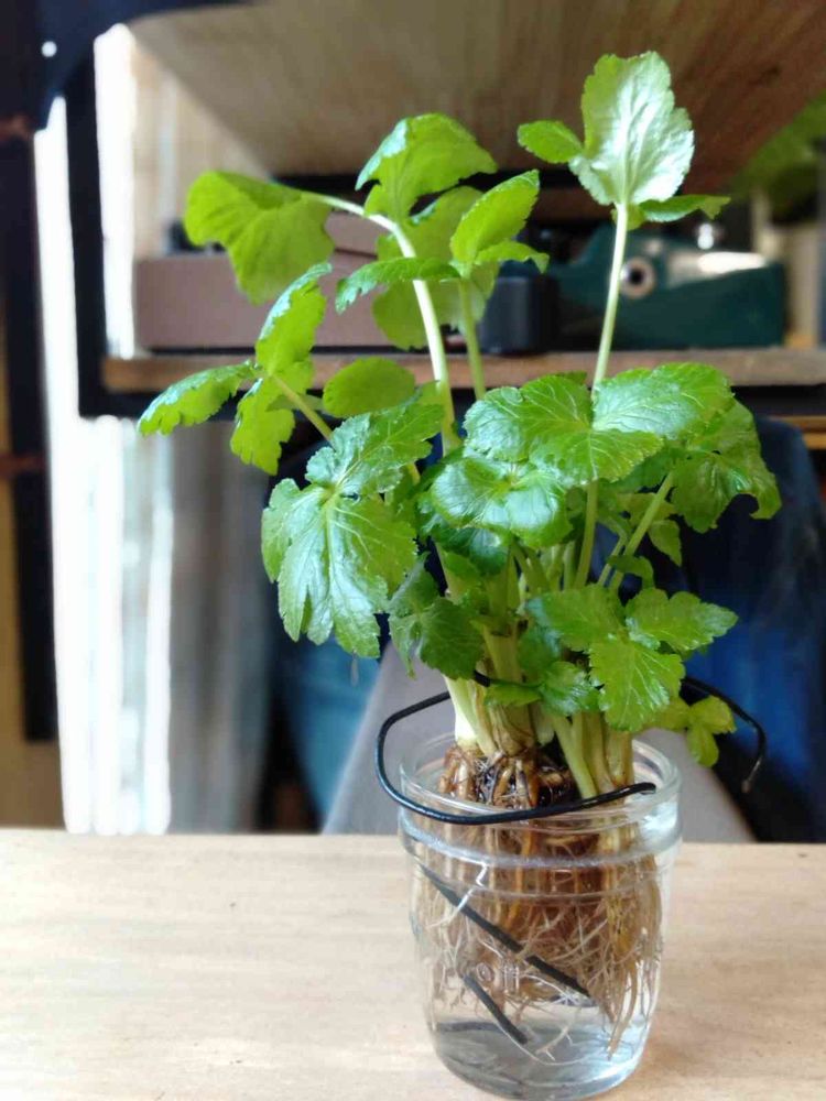 スーパーの豆苗をは2回転ぐらい水耕栽培いけるみたいですが、セリは何回いけるんだろ~😆💓