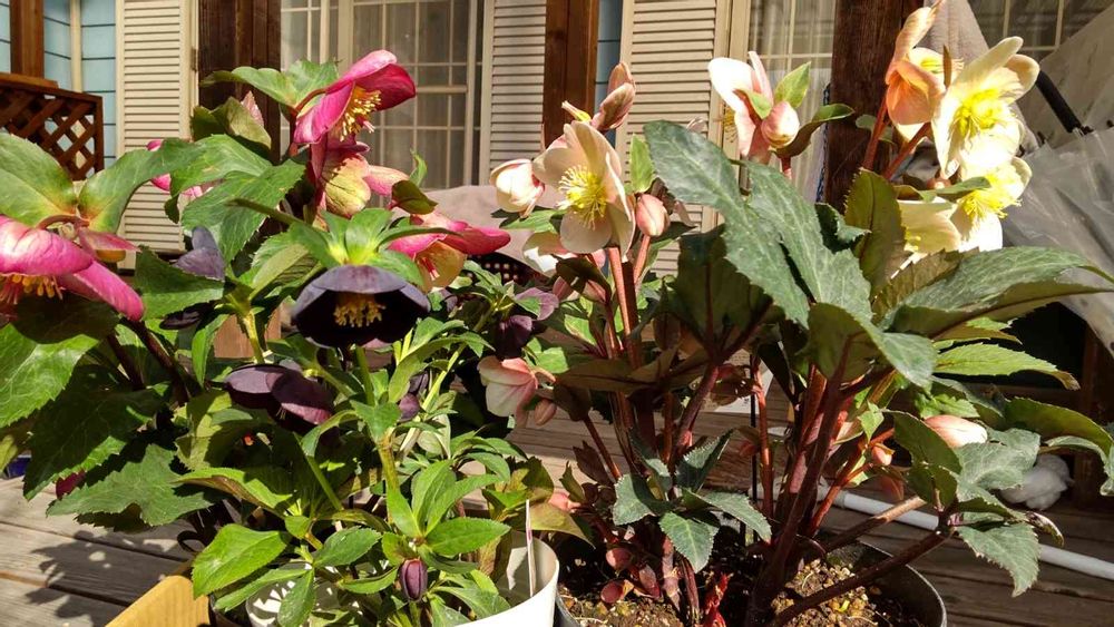 今日はポカポカ陽気だったので、お迎えしたクリスマスローズ3鉢を早速ベランダで日向ぼっこさせました☀