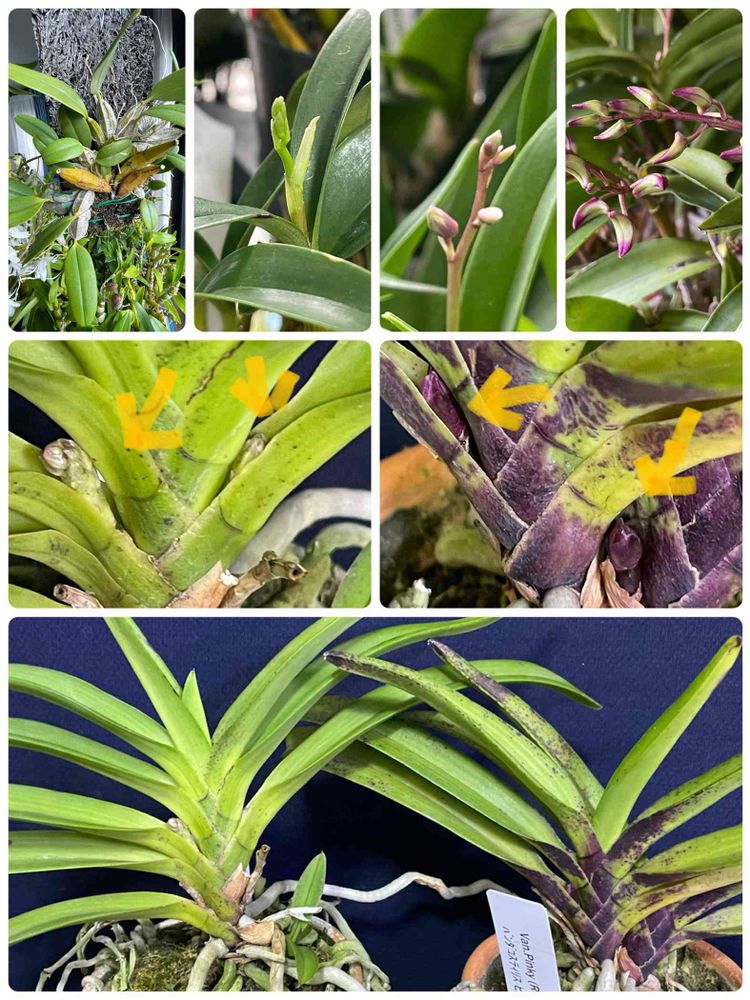 2段目はバンダコスティリスのピンキーとピンキーレッド。こちらも花芽を発見👀