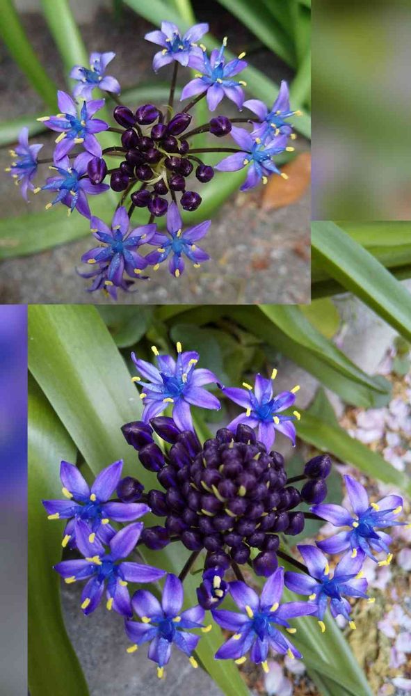 青紫色のシラー・ペルビアナの花、黄色い蕊が可愛いです💕