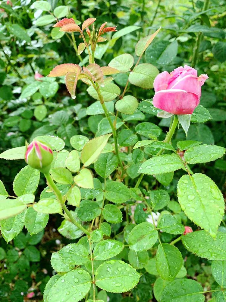 綺麗にバラさん雪梅雨がついてますね💗💗💗💚