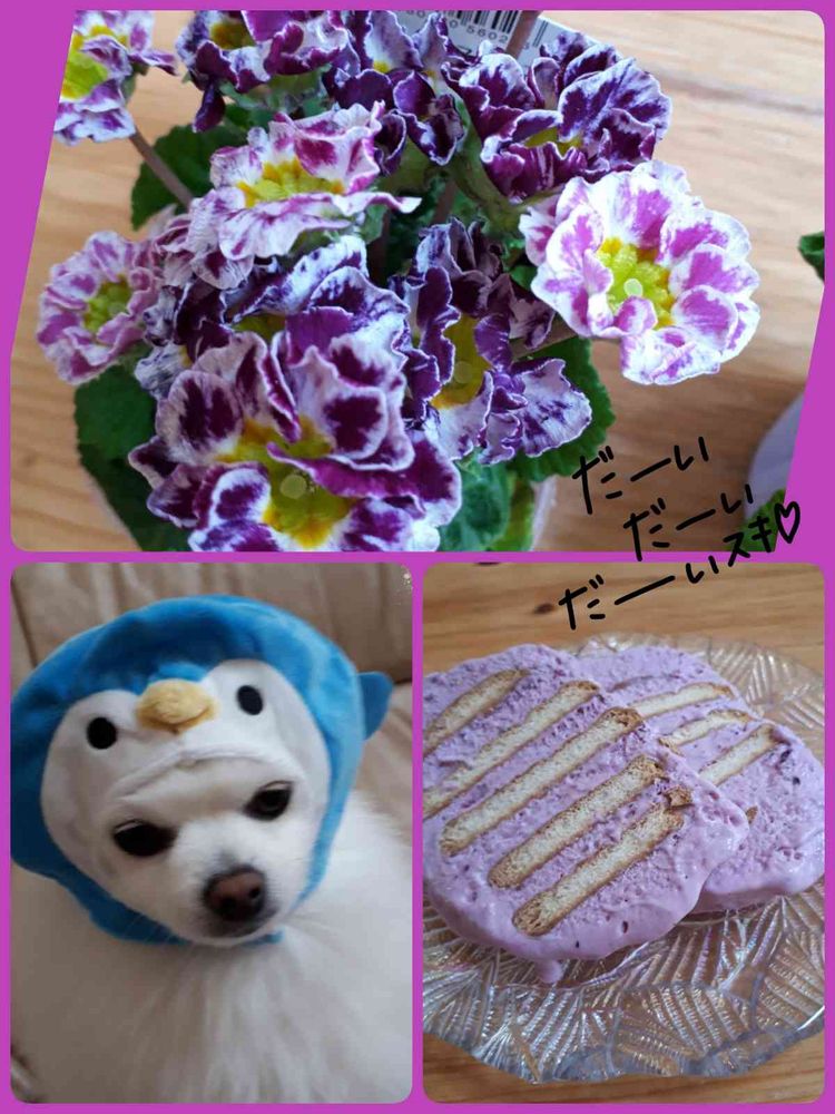 ↘️ブルーベリージャムが余って、ビスケットと生クリームとジャムで作った、なんちゃってブルーベリーアイスケーキ💜