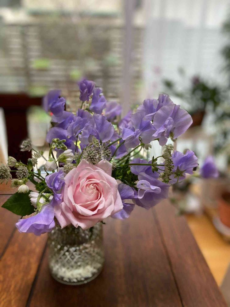(⑅•͈૦•͈⑅)綺麗で、スイートピーの藤色と似合ってるね😃
