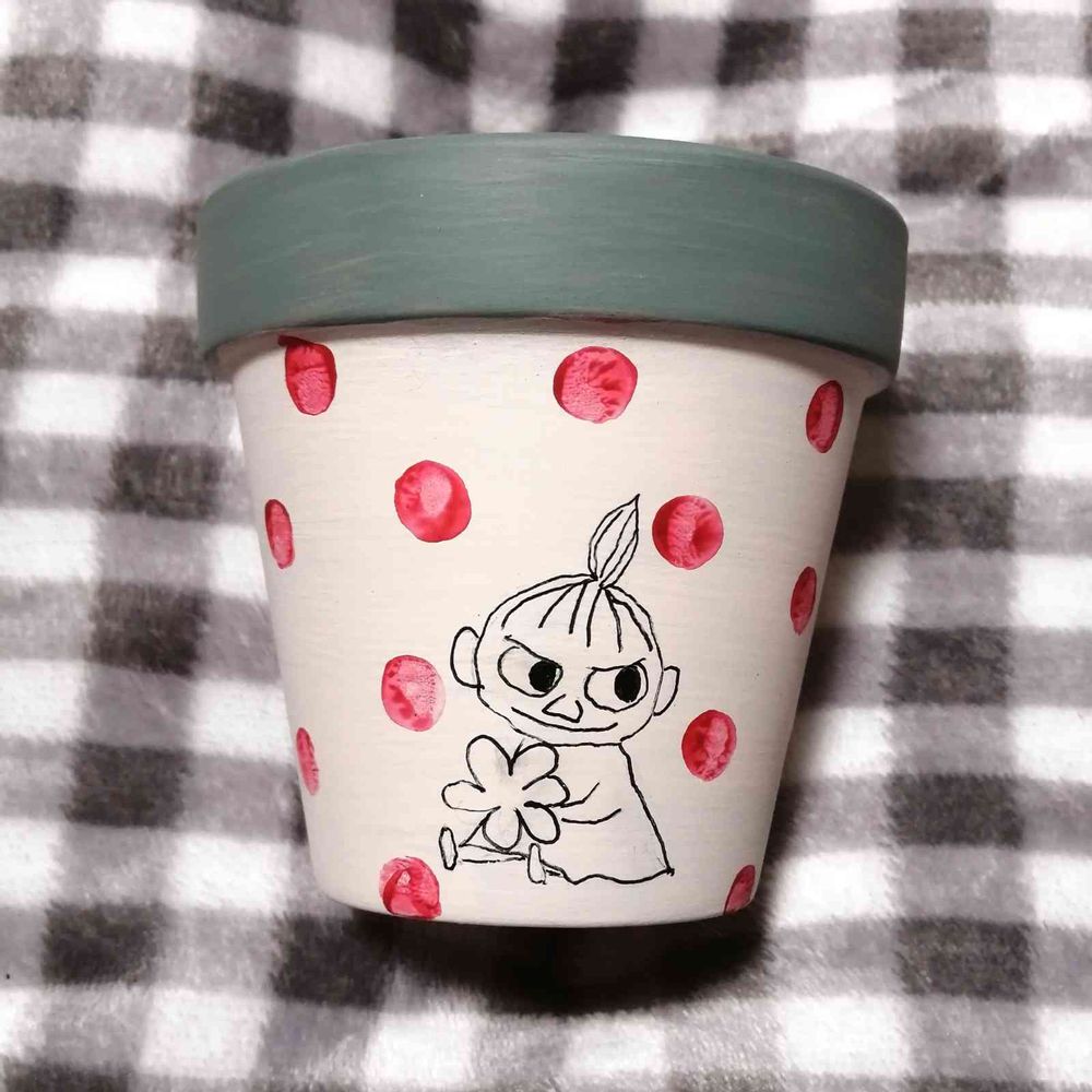 消しゴムハンコ水玉大きめで作ったんですが、この鉢のサイズには大きすぎて感覚が空けられなかったので、ハンコ2個目を削りました😁✨