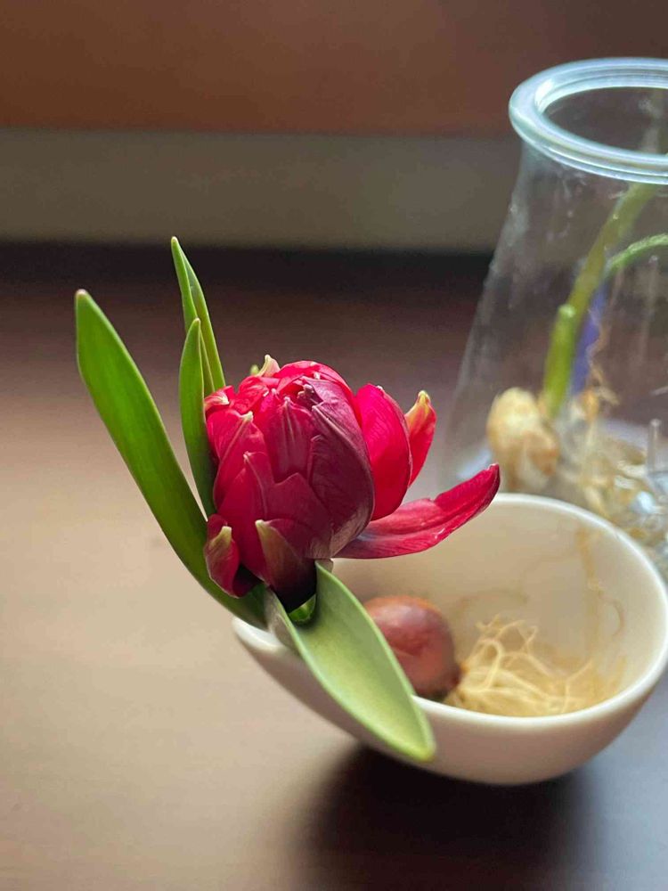 いつもの花屋さんで水耕栽培用に蕾のついた苗が売られてるから買ってる