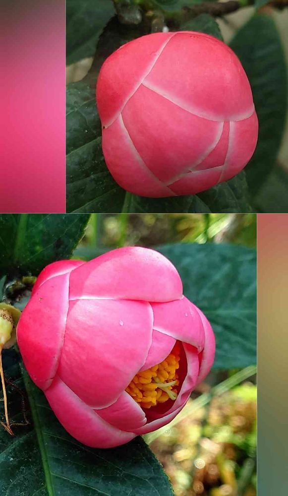 濃いピンク色のベトナムツバキ・ハイドゥンの蕾、綺麗です💕
