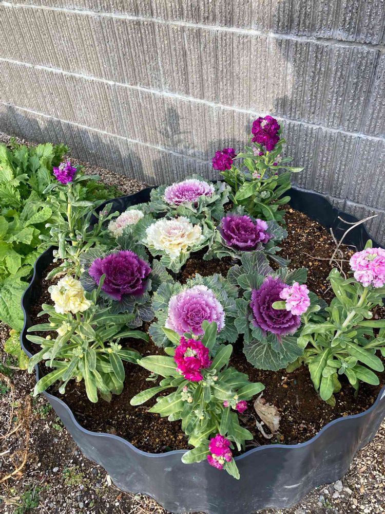 空いているところはチューリップが咲く予定なんです😅リーズナブルなワンコイン花壇