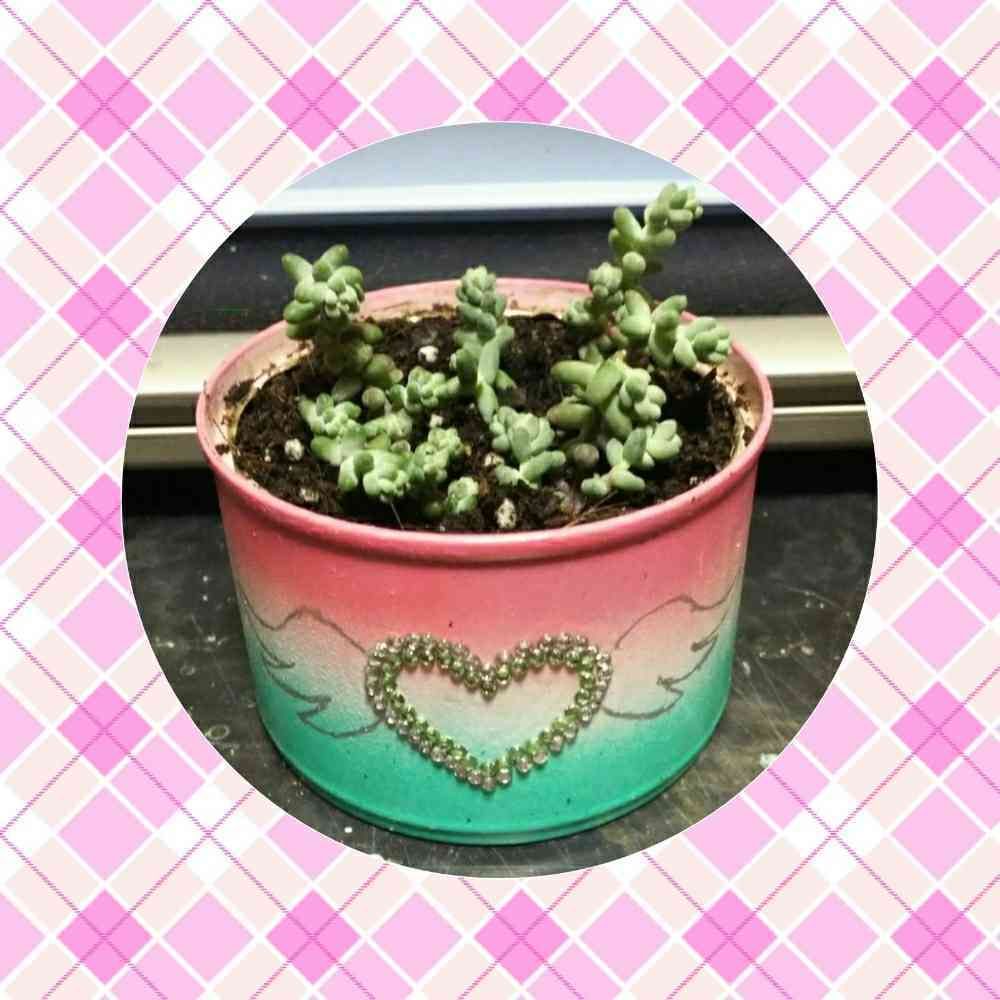 別名が天使のそよ風なので羽根つきハートのリメ缶に植えてみました(*^_^*)