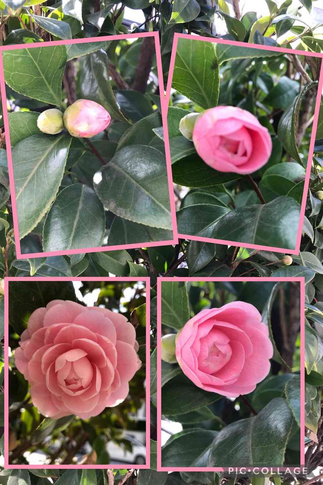 椿、ピンクもきれいですね💕左下、バラみたい🥰