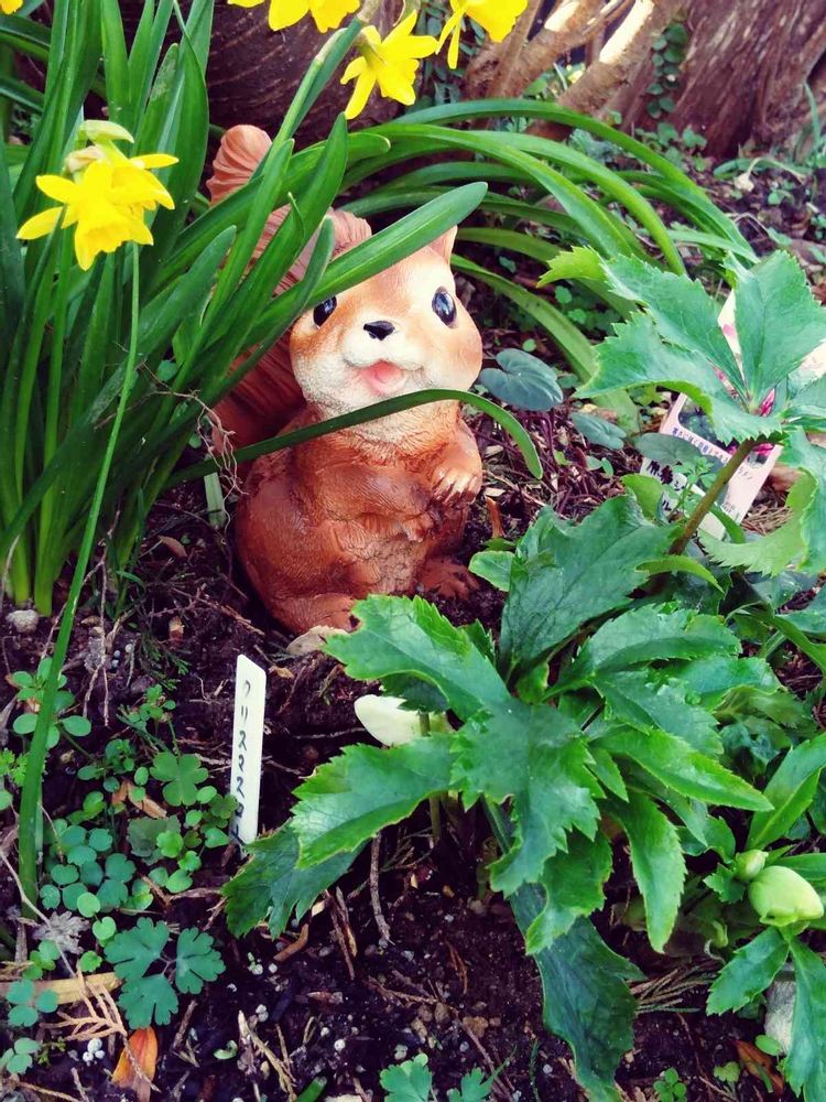 もうすぐ咲くよーって、ティタティタとリスが見守っています☺️