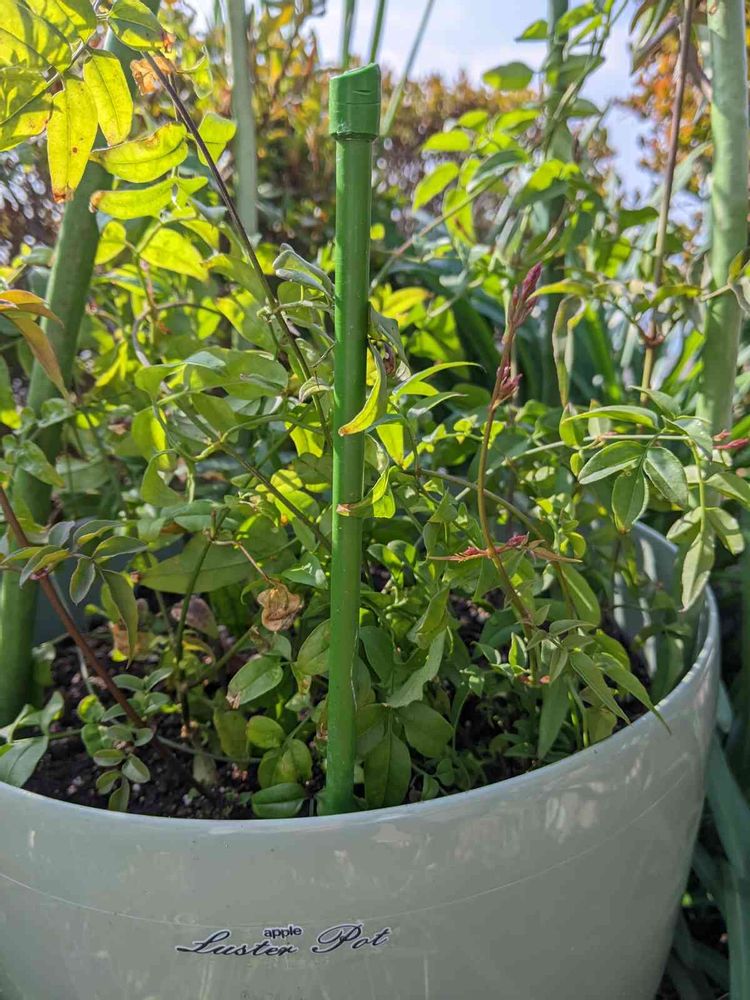 ハゴロモジャスミンを植え替えました。娘に。尋ねたら、白色の鉢が引き立つでしょうと、🤔そうかもしれません。花が咲き終わってからまた、考えよう~と。🙋