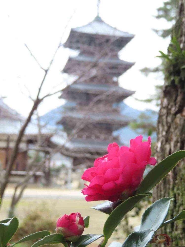 75番札所善通寺境内、山茶花と五重塔が素敵なコラボを見せてくれました。