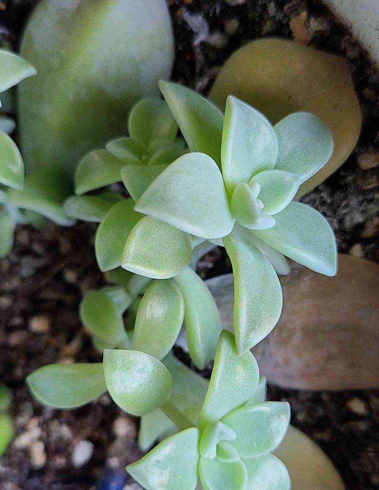 葉から、栄養を、頂いているのか、葉の厚みが、減り色も悪くなりました。部屋の中で、あまり日が当たらないので、徒長気味です。