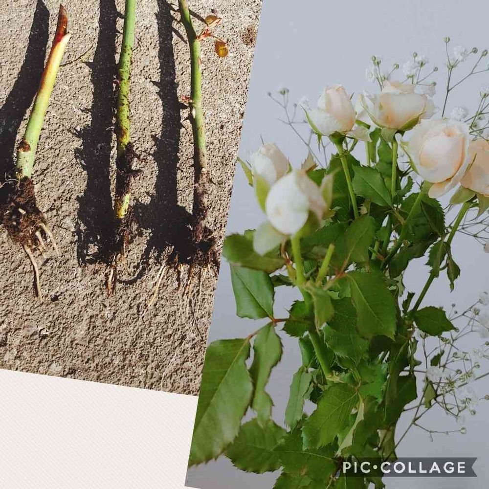 切り花から挿し芽。今日は恐る恐るその辺に挿し芽をしたのを引っこ抜き、芽が出ていることに感激。