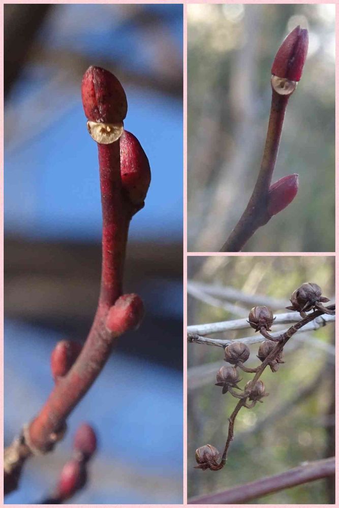 ネジキの冬芽・葉痕は赤いから見つけやすいかもしれません!
