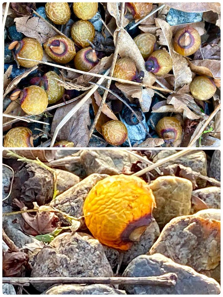 木の周りの地面に びっしりです 少し離れたところに 落ちた実に ひかりがあたり ベツコウ色に 輝いて 綺麗でした