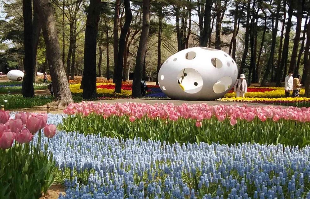 海浜公園のたまごの森でのカラフルな🌷🌷とムスカリのコラボ