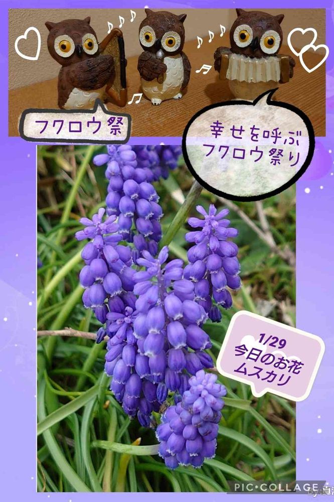 可愛らしい🦉さんたちでしたので、丸い感じのお花とのコラージュが良いなぁと思っていました😉🎶ムスカリぴったりでした💟💟