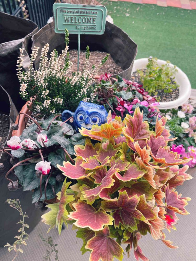 寄せ植えの、もみじ葉ゼラニウム🍁右下に