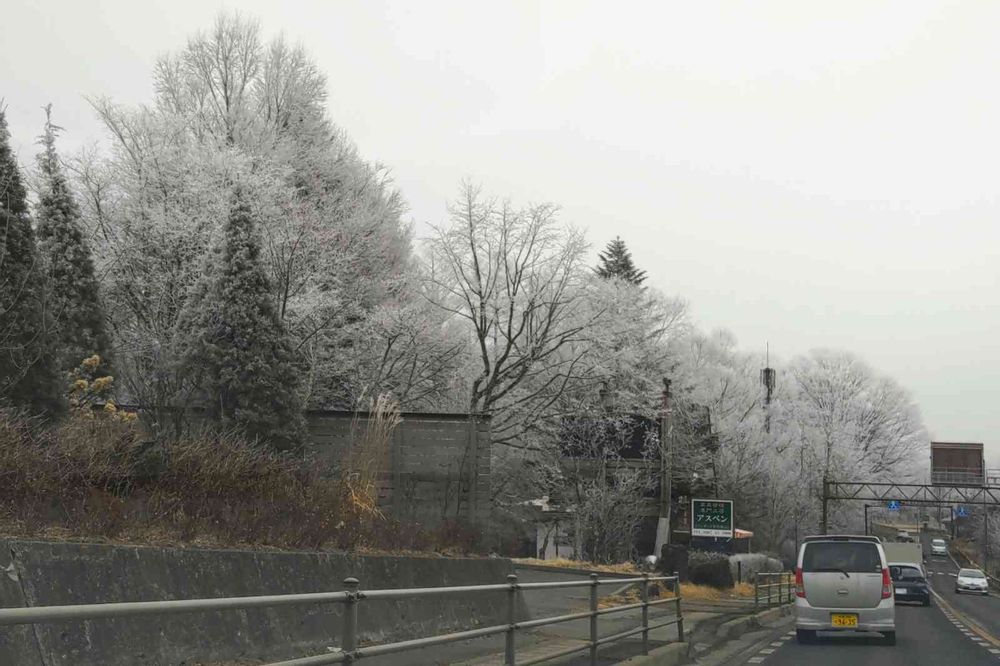 さん 国道には雪はありませんが周りの木々は全て凍ってます。寒さは大したことありませんよ!マイナス5度くらいです。🥰