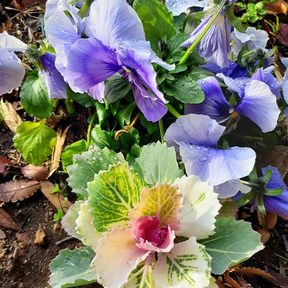 花壇にパンジーと葉牡丹が咲いてきたのですねー🎶🌸
