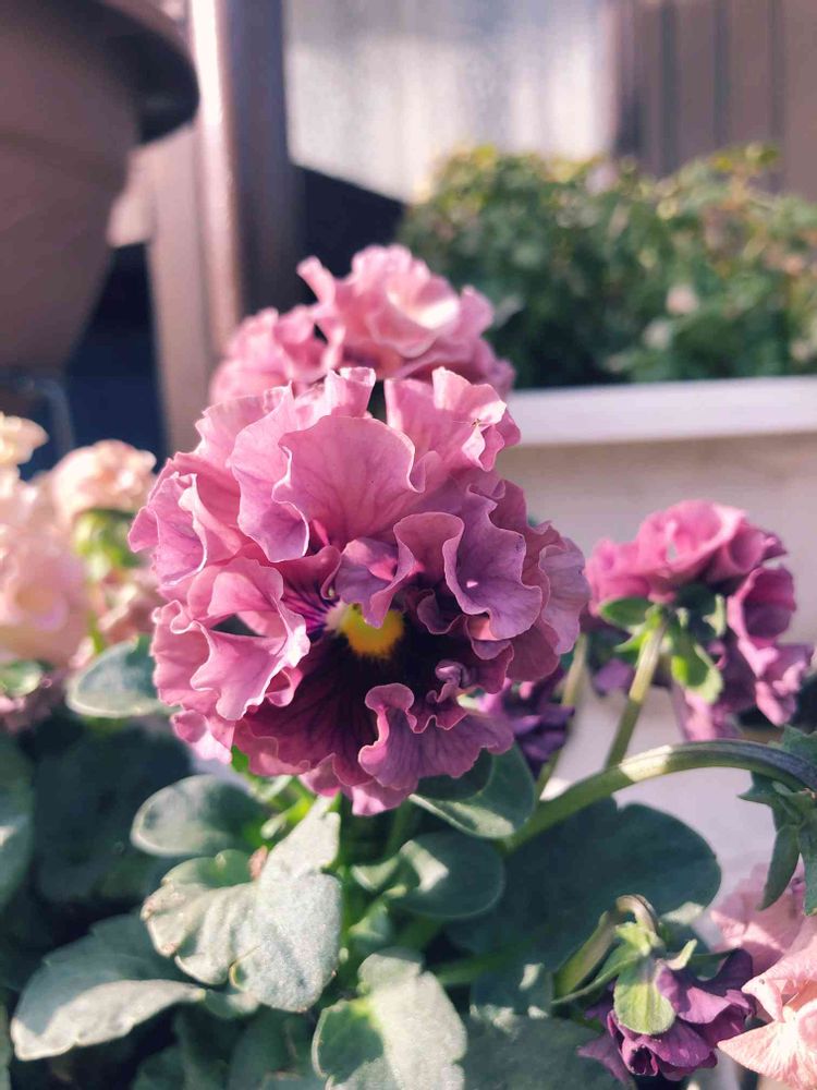 頭も盛り盛り、盛り髪みたいなパンジー。