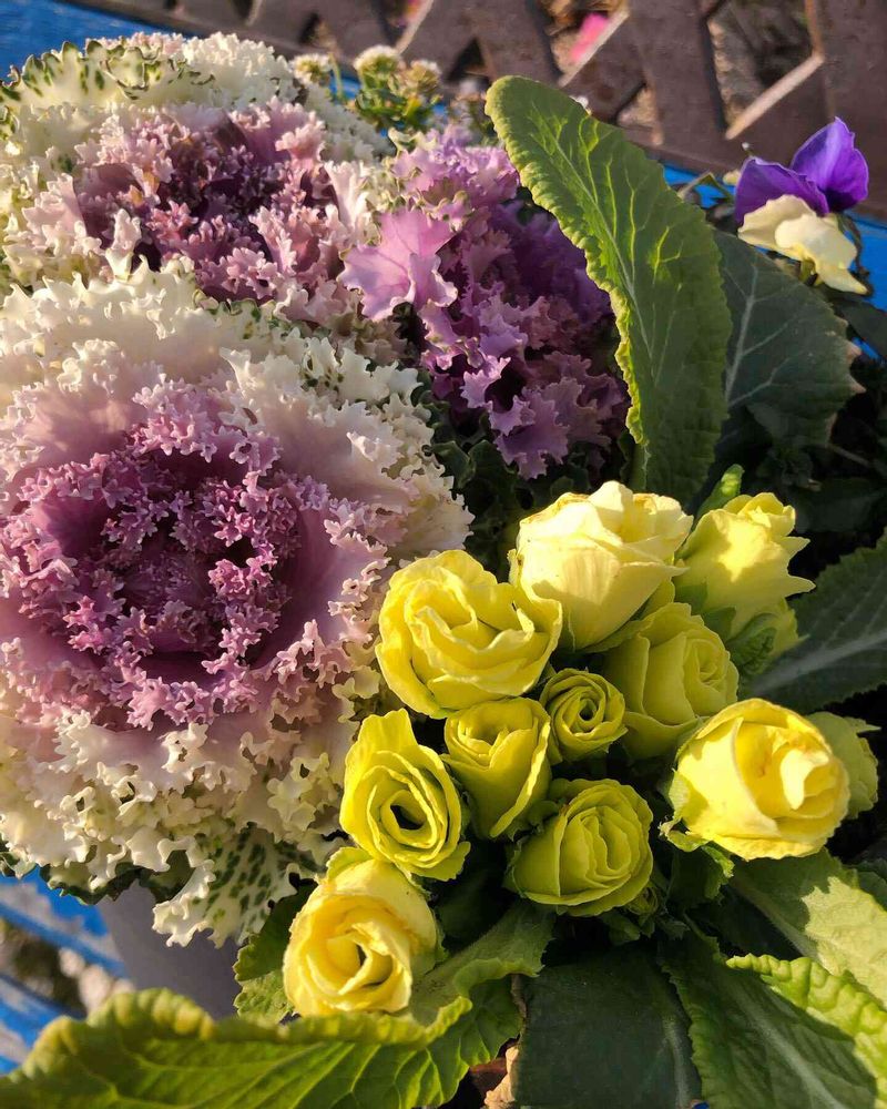 葉牡丹と薔薇咲きジュリアンが可愛い〜❤️