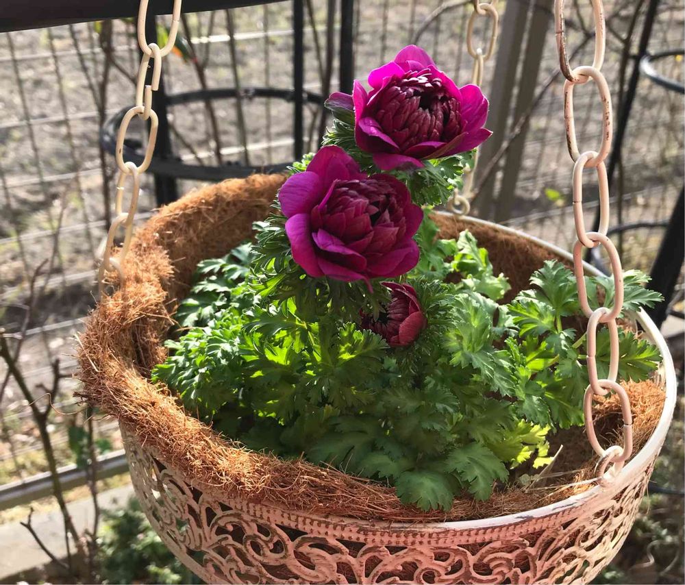 吊り下げバスケットは手持ちのカートマニージョーを植え付けるつもりだったのですが、アネモネさん合いそうですよね✨✨