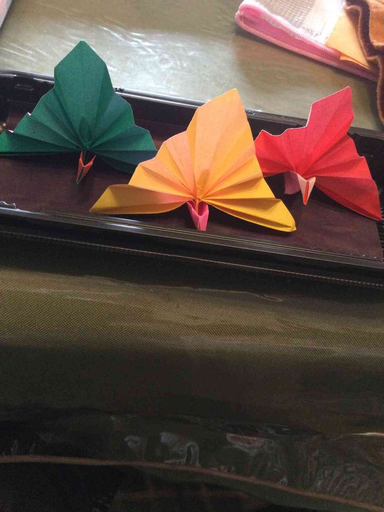 リハビリ利用者の方が指のリハビリでこうやって小さいツルを折っていらっしゃいます。